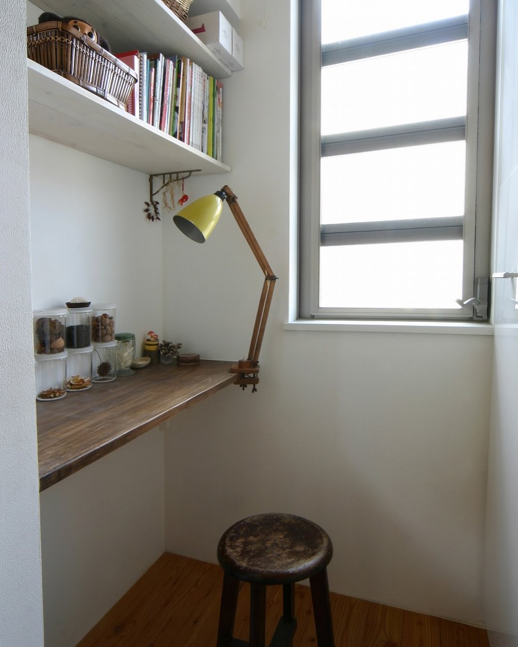 キッチンの奥にある家事コーナー。適度にプライバシーの守られた落ち着いた空間となっている。