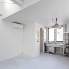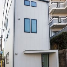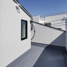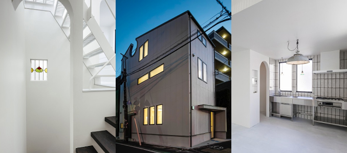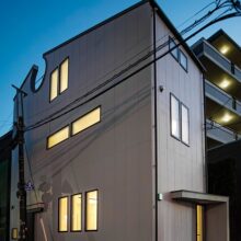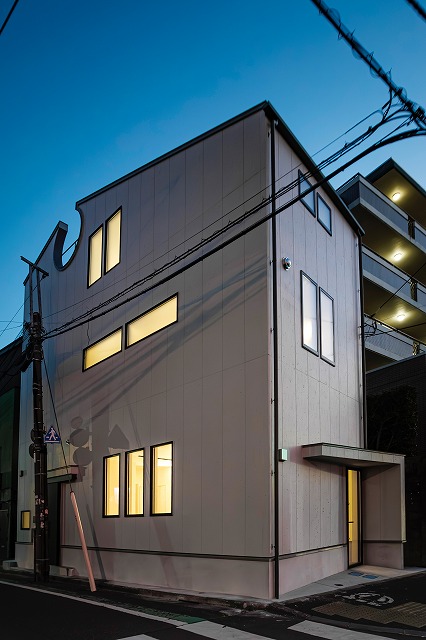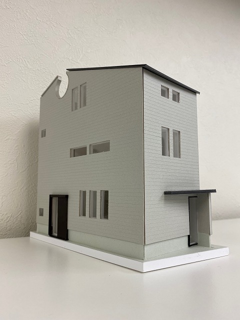#112 和泉の住宅(建築面積:10.4坪) 東京都杉並区 木造2階+ロフトでユニークな空間の狭小住宅 Tags:在来工法 , 木造2階 建築模型 敷地面積:14.8坪 建築面積:10.4坪 設計担当:設計工房 久保宗一 施工担当:株式会社 晃栄ホーム 完成 2026年 木造2階+ロフトのユニークな空間構成です。 全景(正面より) 夜景(側面より) 玄関を見る キッチンを見る 階段を見る 洗面 ルーフ空間